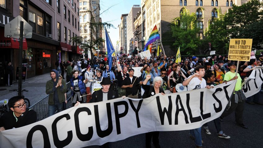 Un rassemblement de protestation avec des slogans appelant à la capture de Wall Street.