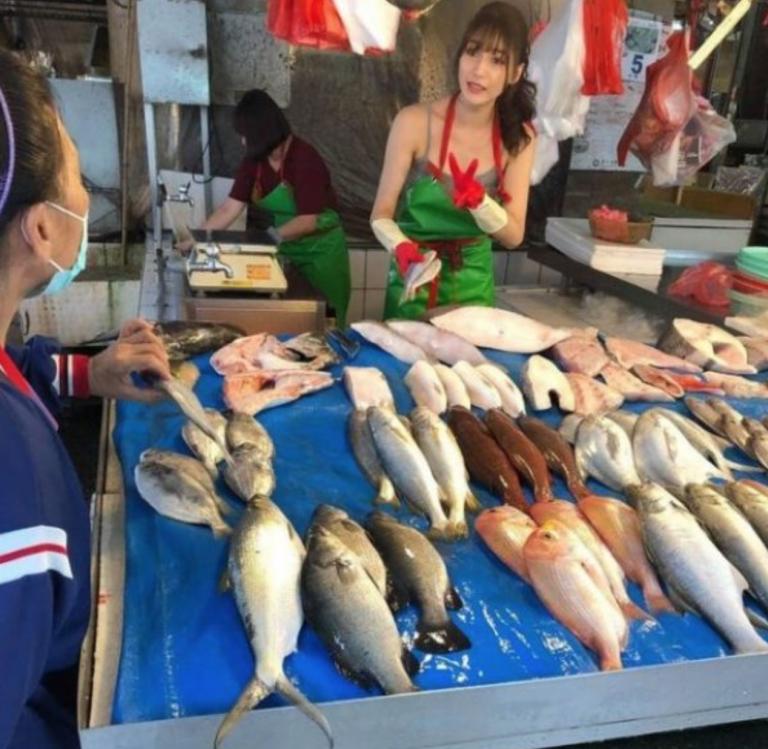 Un jeune homme se promenant dans un marché aux poissons du comté de Changhua, à Taiwan. Dans l'une des rangées de poissons, il a remarqué une très belle vendeuse avec une apparence de mannequin. Il a pris une photo d'elle et a posté les photos sur Facebook, en signant "Maman, maintenant je vais toujours t'acheter du poisson."