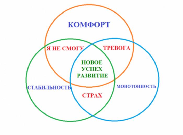 Si un homme d'affaires a une entreprise prospère qui lui apporte des bénéfices stables et élevés, il se trouve alors dans la zone de confort. Si une personne est confrontée à des crises, des pertes ou d’autres problèmes importants, elle est obligée de quitter cette zone.