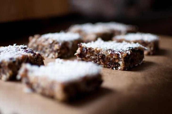 Un autre regard sur les biscuits traditionnels concerne les barres à base de noix et de fruits secs. Veuillez noter que vous pouvez remplacer n'importe lequel des ingrédients selon vos préférences.