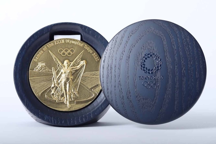 Chaque médaille mesure 85 millimètres de diamètre et présente une image en relief traditionnelle de Nike, la déesse grecque de la victoire, se tenant devant le stade olympique. De l'autre côté de la médaille, Tokyo 2020 et les emblématiques 5 anneaux olympiques sont gravés. Seulement 5000 médailles d'or, d'argent et de bronze. Ils ont tous été créés avec des métaux extraits d’électronique recyclée. Chaque médaille se voit offrir un ruban et une caisse en bois, chacune d’elles ayant été fabriquée par un maître japonais. Tokyo 2020 déclare: "Comme chaque personne qui entre sur le terrain de la compétition a des traits individuels, un arbre possède des motifs uniques - nous en avons tenu compte lors de la conception des cas."