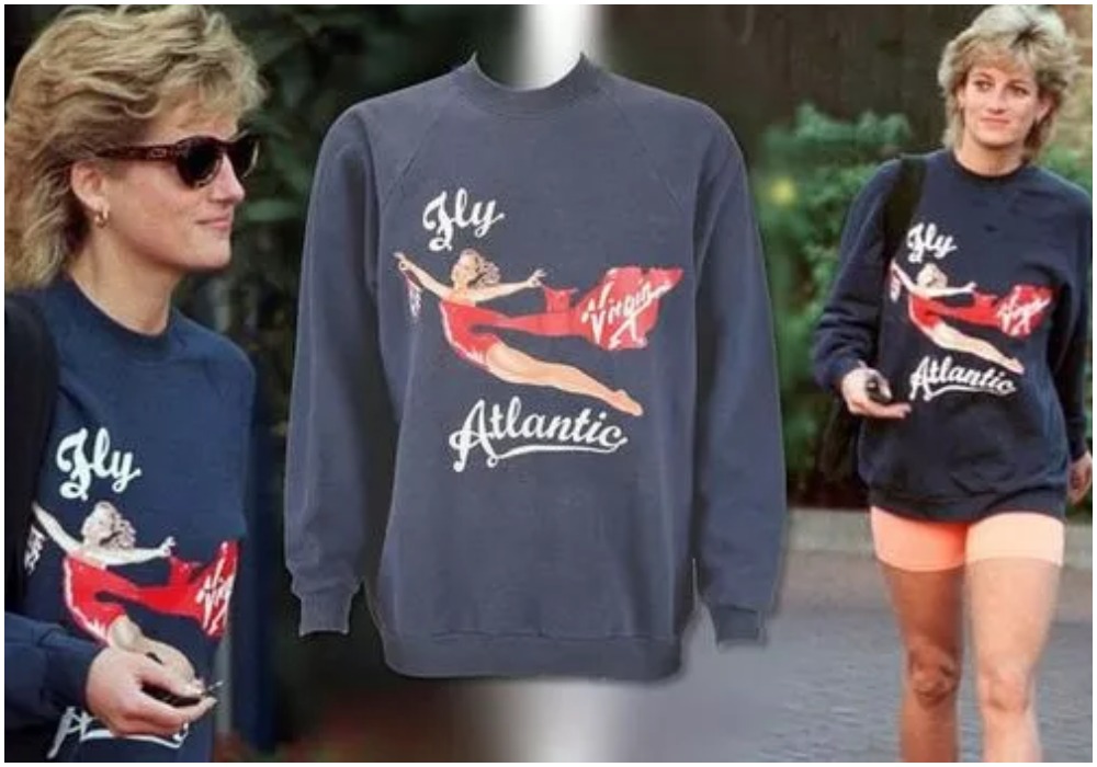 Le sweat-shirt montre une impression du Fly Atlantic, il a été présenté à la princesse par le magnat des affaires, Sir Richard Branson. Et la princesse a offert la tenue à son entraîneur.