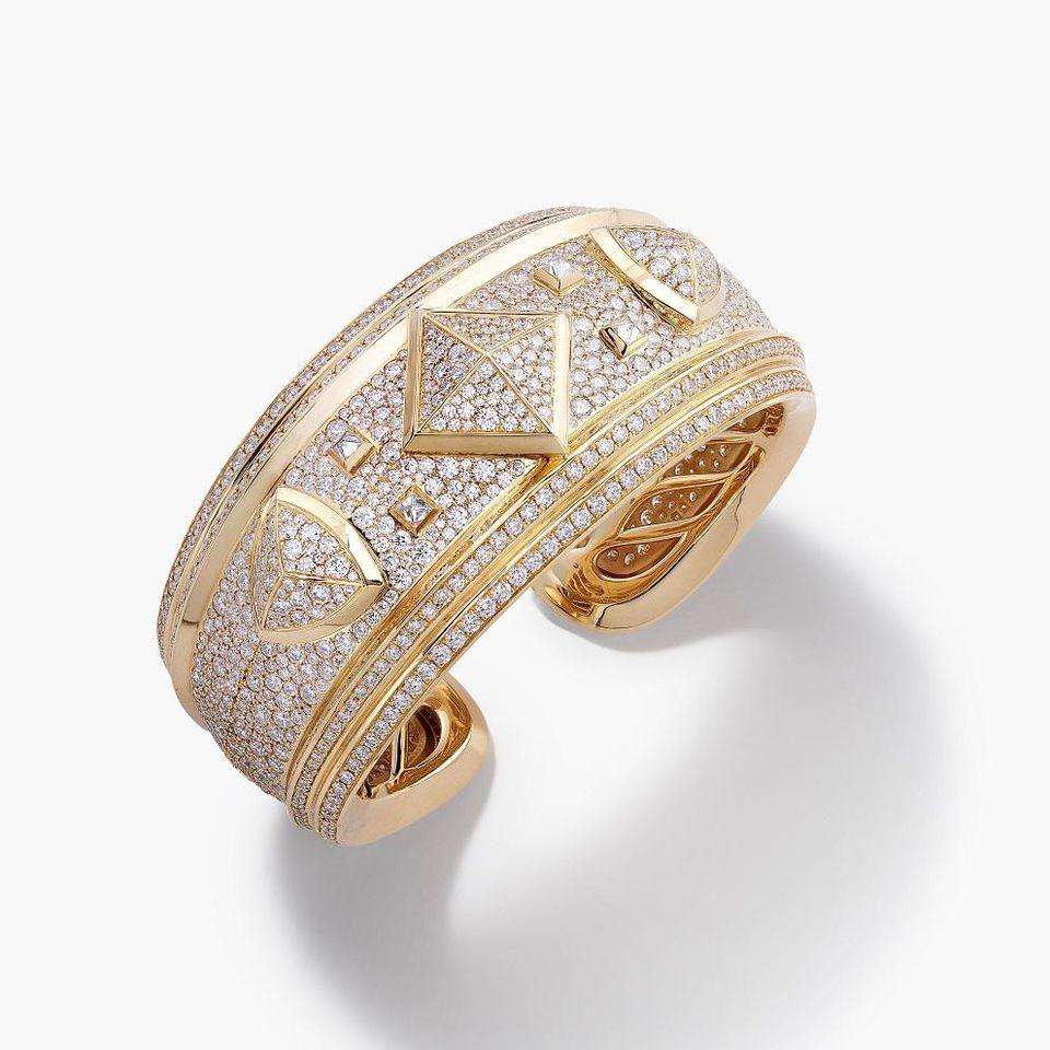 Il a été inspiré par les courbes et le sable changeant des paysages désertiques, la lumière changeante du terrain dénudé, des aperçus d’eau et de végétation. L'or mélangé avec des diamants précieux multicolores est le principal matériau utilisé dans la collection.