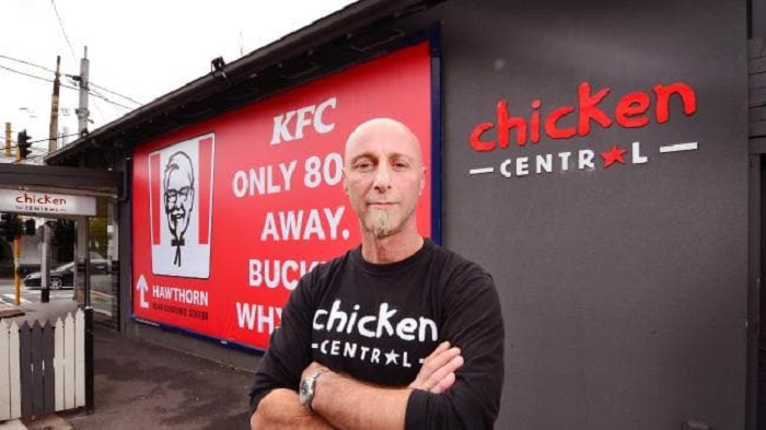 Le propriétaire d’un petit établissement à Melbourne a résisté au coup porté par la publicité d’un concurrent et a vaincu une grande entreprise de restauration rapide. L’histoire a commencé après qu’une célèbre chaîne de fast-food avec un panneau publicitaire a accroché un énorme panneau KFC à l’avant de son bâtiment.