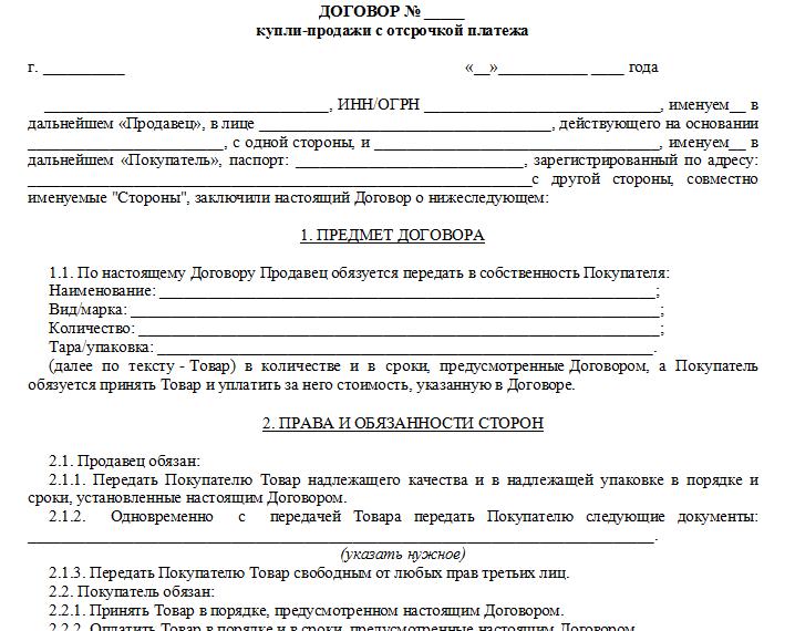Les biens à paiement différé sont présentés dans différents domaines - commerce de détail, relations entre entrepreneurs ou organisations. Dans certains cas, le délai devient la norme. En particulier, dans le domaine des commandes étatiques et municipales, les artistes-interprètes sont confrontés à l’imposition de paiements différés. Parfois, ils sont confrontés à un fait et sont forcés d'aller au tribunal. Cependant, nous considérons des cas d'application volontaire du schéma décrit.