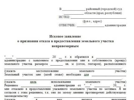 - Demander une reconnaissance de la propriété du terrain. Dans celui-ci, brièvement, mais en même temps que détaillé, il est nécessaire de décrire la situation spécifique et demander à sécuriser la propriété de la propriété.