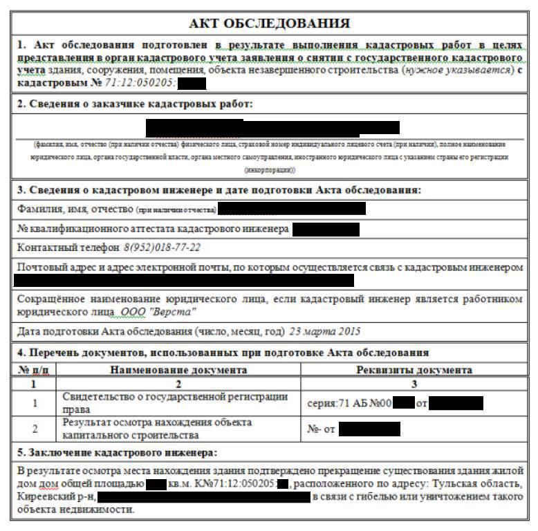 Ce n'est que sur la base de ce document que la radiation de la propriété est effectuée à partir du registre cadastral. Un exemple de rapport d'inspection peut être étudié ci-dessous.