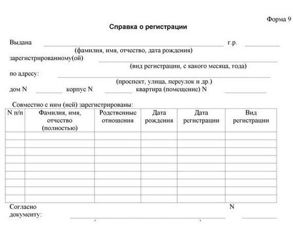 De plus, à la forme 9, tous les citoyens vivant sur le territoire sont enregistrés. Un tel certificat contient des informations sur la date d'enregistrement de certains locataires, ainsi que sur le degré de leurs relations avec le demandeur. Très confortable!