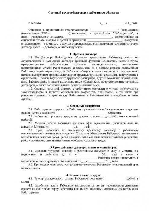 La durée maximale du contrat est de cinq ans. Mais la période minimale n'est pas légalement établie. Par conséquent, le contrat peut être conclu pour au moins un jour. Bien que la question se pose ici: "Est-il nécessaire de conclure un contrat à durée déterminée?" Ses avantages et inconvénients perdent clairement dans ce cas à un accord de droit civil.Par conséquent, pour une interaction d'une journée, il est préférable de signer un contrat ou un service payant.