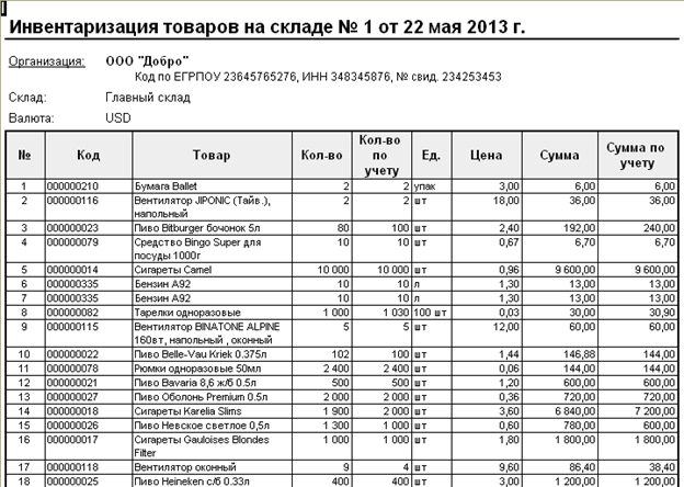 L'inventaire est une procédure importante pour chaque entreprise. Il est représenté par le processus de réconciliation de la propriété existante de la société avec les informations disponibles dans la documentation de l'entreprise. L'objectif principal de ce processus est la comparaison des données et l'identification des pénuries. Le moment de l’inventaire peut varier considérablement d’une société à l’autre. En règle générale, le processus est effectué chaque année avant la préparation des rapports annuels. En outre, chaque responsable peut à tout moment émettre un ordre sur la base duquel un audit est effectué, s'il existe de bonnes raisons pour cela.
