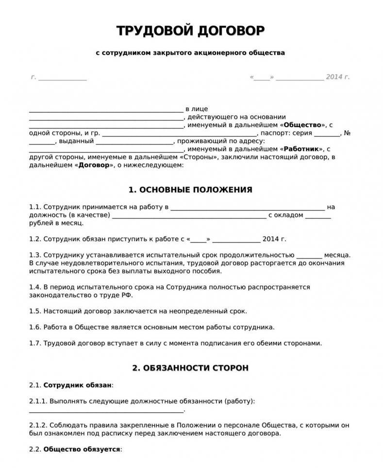 Le contrat est établi conformément au formulaire standard. Il existe un formulaire unique pour l'ensemble du pays, approuvé par décret du ministère du Travail n ° 135 en 1993. Si nous parlons d'un contrat signé avec certaines catégories de travailleurs, il s'appuie également sur des échantillons élaborés au niveau des ministères qui gèrent les secteurs de l'économie ou les secteurs de la vie publique concernés. La législation contractuelle, par exemple, concerne directement les chefs d’État et les entreprises, organisations et autorités municipales.