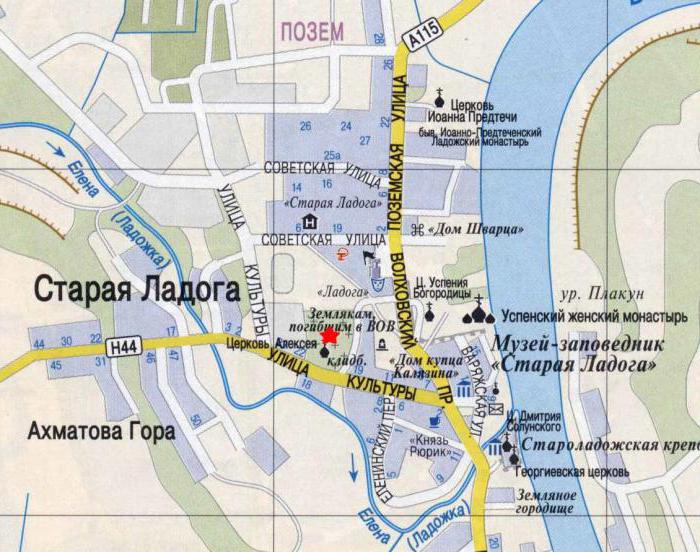 Une carte des sites touristiques de Staraya Ladoga vous aidera à naviguer dans le village (voir photo ci-dessous).