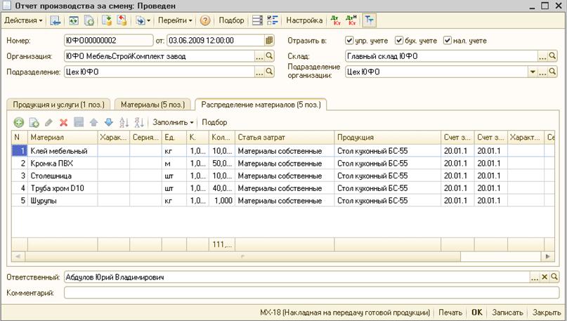 Le programme distingue un système de comptabilité analytique bien développé. Ces derniers peuvent être classés par type, nature d'utilisation, analysés dans le futur. L'application met également en évidence les spécifications qui déterminent la composition des produits. Sur cette base, le coût de production dans le SCP est déjà calculé.