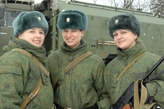 Comme vous le savez, les femmes ne sont pas enrôlées dans l'armée. Ils ne peuvent y arriver que sur une base volontaire en signant un contrat. Selon la loi, le premier accord doit être conclu pour trois ans. La liste des professions militaires pour lesquelles une femme peut postuler est spécifiée à l'art. 38 de la loi fédérale "sur le service militaire et le service militaire".
