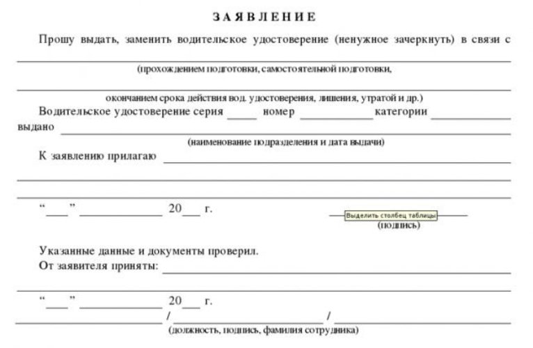 Certains sont intéressés par l'endroit où vous pouvez obtenir exactement le formulaire de demande de délivrance d'une "carte de conducteur". Comme déjà mentionné, il est préférable de ne pas remplir ce document sous forme libre. C'est un geste assez risqué, qui est souvent une perte de temps.